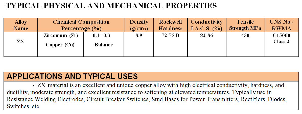 ZX (ZRCU-C15000) ZIRCONIUM COPPER