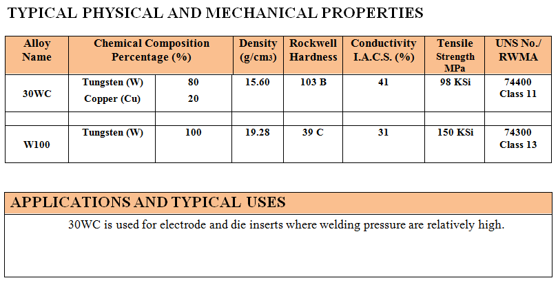 30WC/W100 (WCU/W-74400/74300) TUNGSTEN